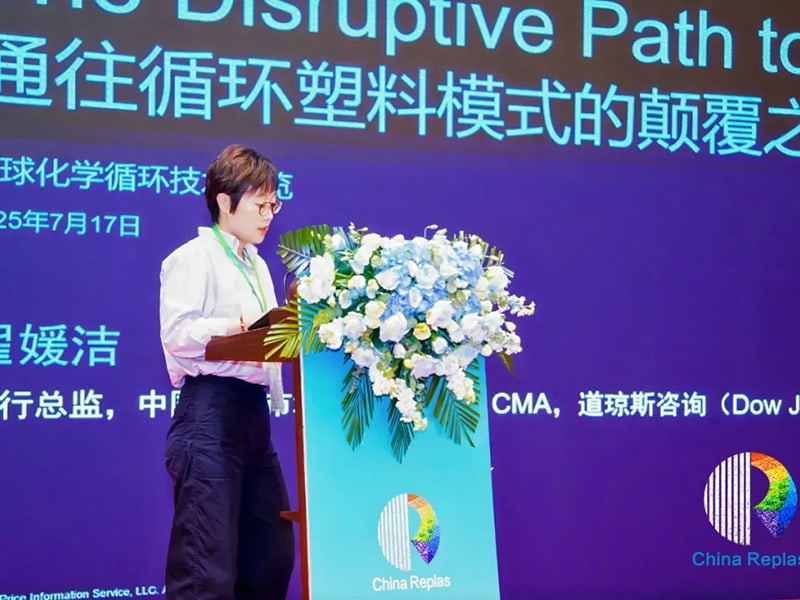 在ChinaReplas2025第32届中国国际塑料回收和再生大会上,道琼斯OPIS化学品市场分析事业部中国区聚烯烃市场研究总监 翟媛洁以《通往循环塑料模式的颠覆之路》为题,系统梳理全球塑料循环化的发展趋势、技术路径、市场挑战与政策机遇,旨在为行业决策者、投资者和政策制定者提供全面、前瞻性的洞察。
