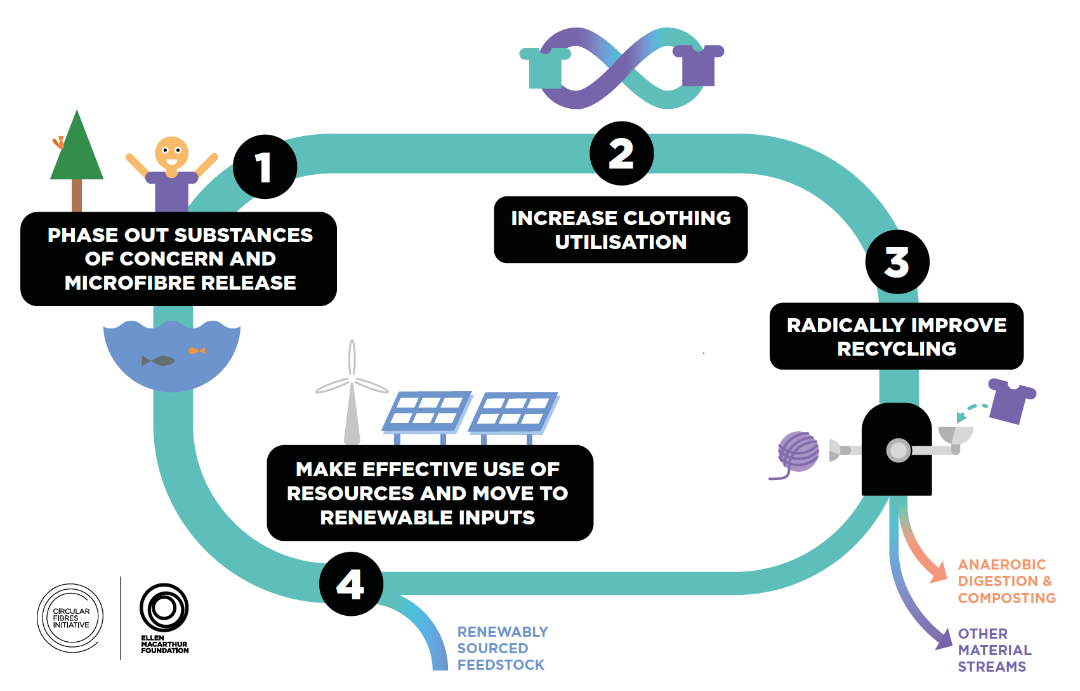 ● 完善废旧纺织品回收网络,推动品牌企业提高再生纤维使用比例。