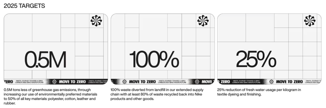 材料以及生产制造所用能源所产生的碳排放约占耐克总碳足迹的70%,因此耐克将该领域作为降低环境影响的核心突破口,通过采用并规模化应用环保优先材料(EPMs)减少产品对环境的影响。